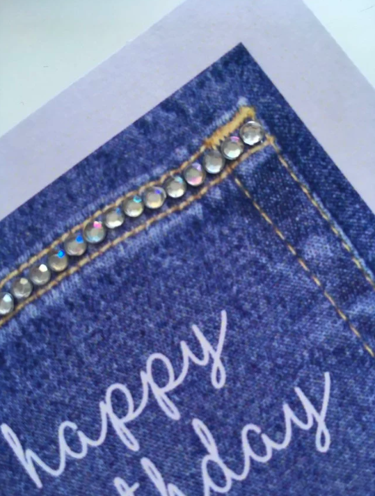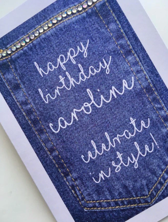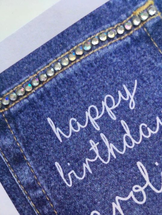 Denim Jeans Pocket Diamanté Birthday Card personalised with name