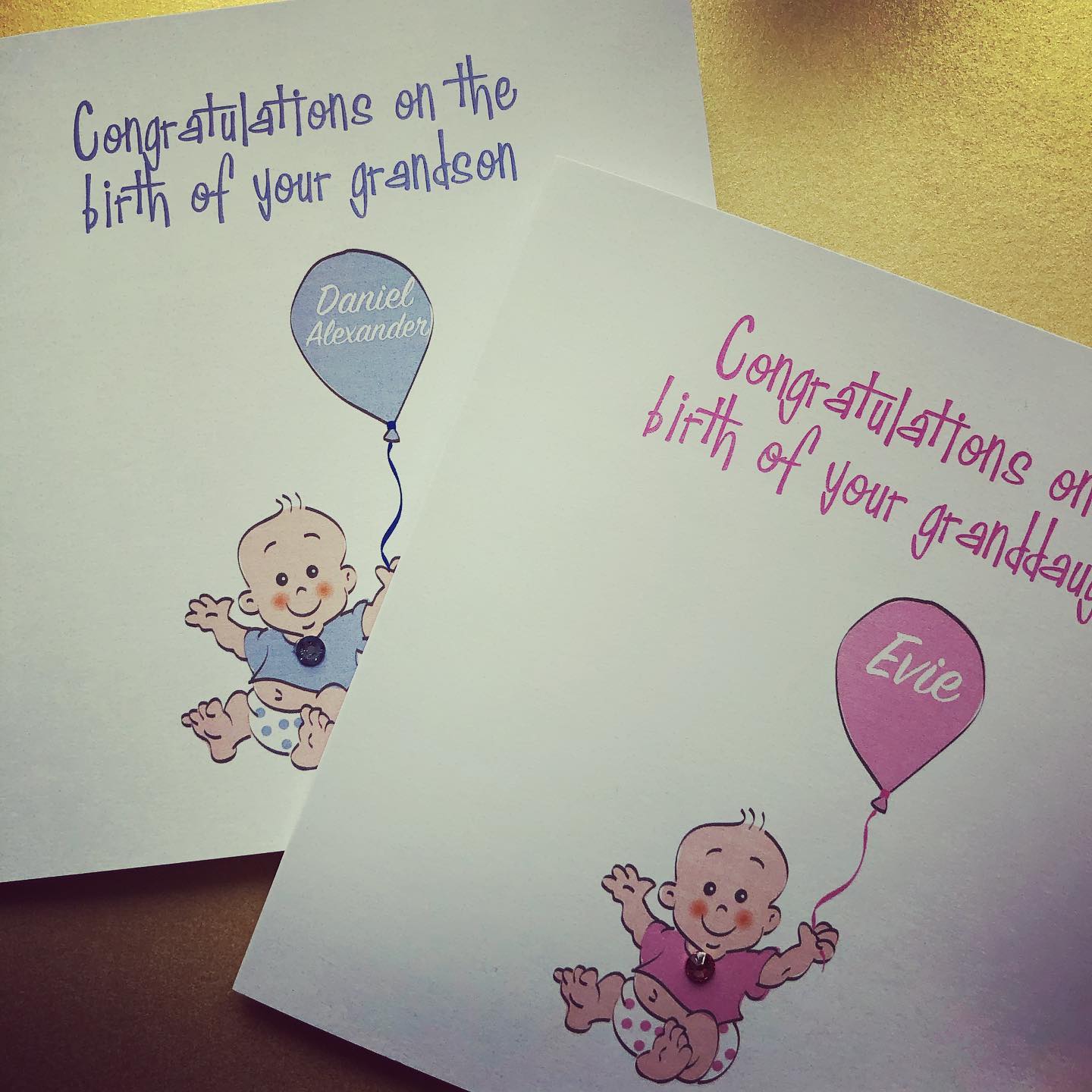 The wording on the front of the card can be personalised to suit new parents or grandparents.